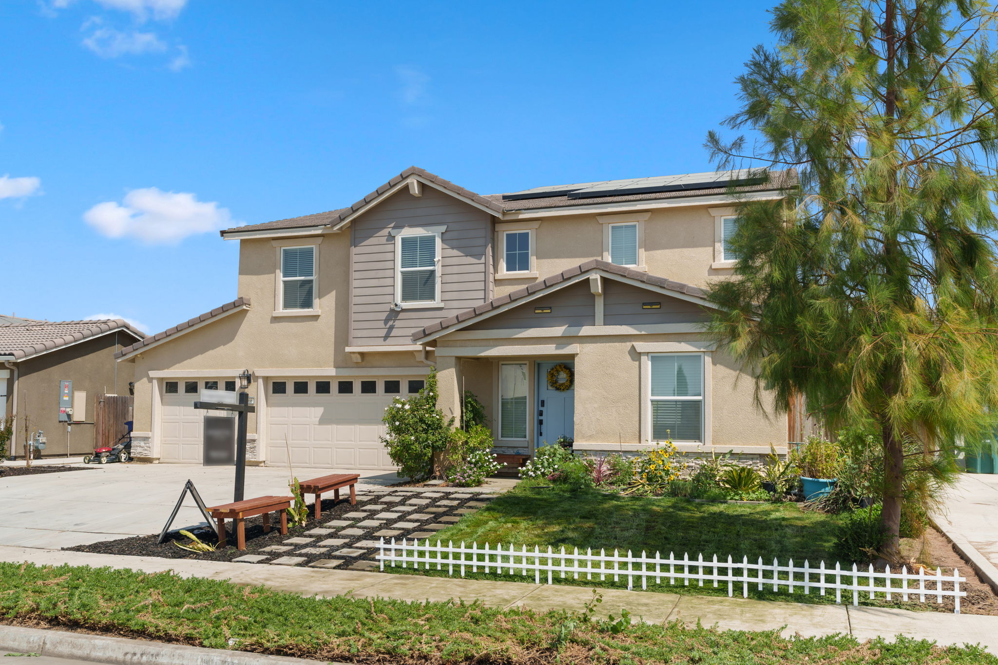 Enjoy this grand two-story smart home. With five bedrooms and three baths, the open-concept inspires relaxation and joyful activity. Designed for entertaining and everyday living, the open gourmet kitchen offers ample counter space with a center breakfast island, Quartz granite counter-tops, a walk-in pantry, and Whirlpool stainless-steel appliances that include a dishwasher, an over-range microwave, plus a Frozen Bake technology gas range cook-top! With a 3-Car garage, the first floor offers an isolated bedroom and bath with a great room, breakfast nook, and formal dining area. The kitchen looks out to the spacious great room and dining area. The laundry room with its own sink, luxurious owner's suite with vanity sinks, walk-in closet, and loft are located upstairs and offer plenty of storage. The large backyard presents an opportunity for expansion, ADU addition, or landscaping enhancements, even a future pool or guesthouse. A perfect space to grow into and make your own.. Solar is paid off. No neighbours directly in front of the property.